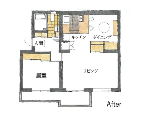 現在60代に差し掛かるお二人は、この家を『人生の最後の住処』としてリノベーションに臨みました。間取りは3LDKから1LDKへと大きく変更し、開放的な空間に。建物の両側から光が差し込むため、壁を減らすことで以前よりも室内が明るくなりました。設計の太田さんとの打ち合わせは、お二人のご要望に対して太田さんがより良い提案をすることで、建設的でクリエイティブな時間だったと、ご主人が当時を振り返ります。